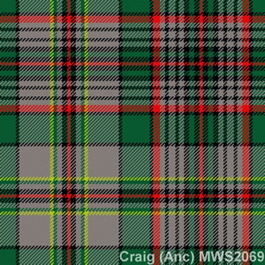 Below is a gallery of products available in different tartans related to Clan Craig. However, the product pictures are only representative of the cut of the product and are not in your tartan. Hover over the tartan names for an image of the tartans and click on the products for more information about the product. For any more questions about tartans, kilts, or anything Scottish, see our FAQ.